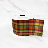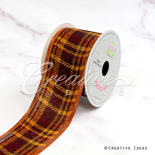 2 1/2" WIRED FALL PLAID RIBBON-10 YDS (Orange/Wine)