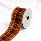 2 1/2" Wired Fall Plaid Ribbon-10 Yds (Orange/Wine)