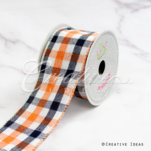2 1/2" WIRED FALL PLAID RIBBON-10 YDS (Orange/Black)
