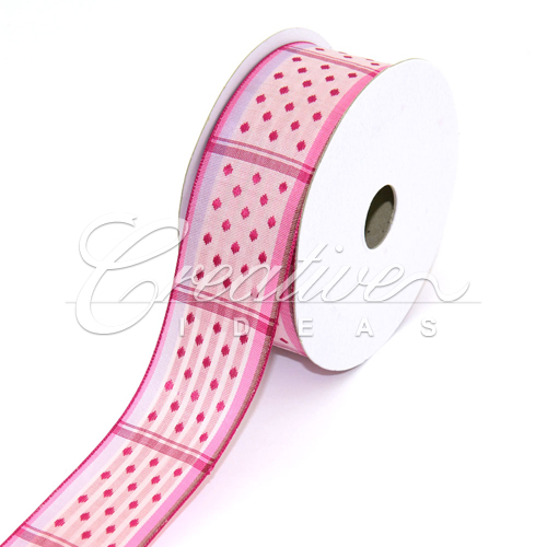 1 1/2" Wired Dippy Dots Ribbon - 10 Yards (Pink)