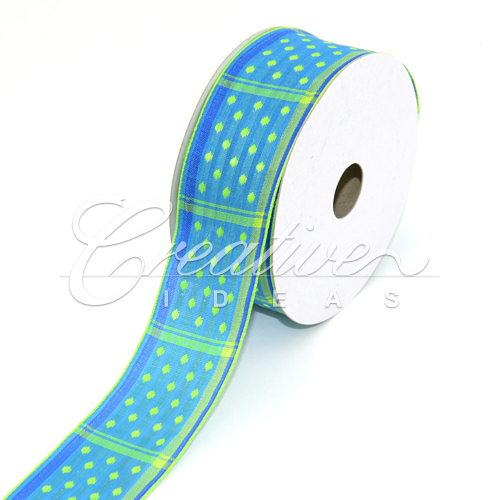 1 1/2" Wired Dippy Dots Ribbon - 10 Yards (Blue)