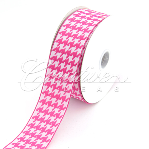 1 1/2" Wired Houndstooth Ribbon - 10 Yards (Hot Pink)