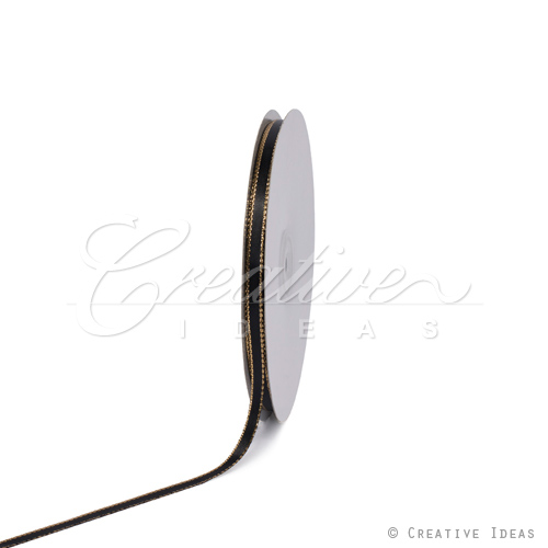 1/4" Satin With Gold Edge Ribbon - 50 Yards (Black)