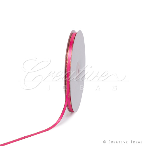 1/4" Satin With Gold Edge Ribbon - 50 Yards (Hot Pink)