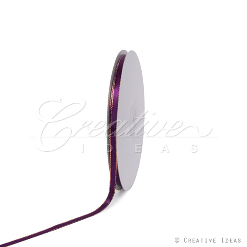 1/4" Satin With Gold Edge Ribbon - 50 Yards (Plum)