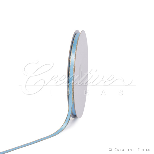 1/4" Satin With Gold Edge Ribbon - 50 Yards (Light Blue)