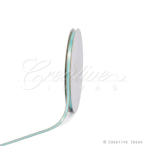 1/4" Satin With Gold Edge Ribbon - 50 Yards (Aqua)