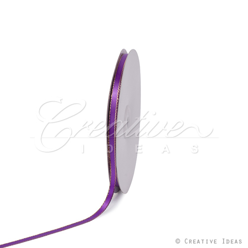 1/4" Satin With Gold Edge Ribbon - 50 Yards (Purple)