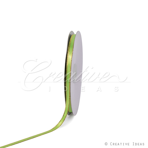 1/4" Satin With Gold Edge Ribbon - 50 Yards (Apple Green)