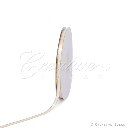1/4" Satin With Gold Edge Ribbon - 50 Yards (Ivory)