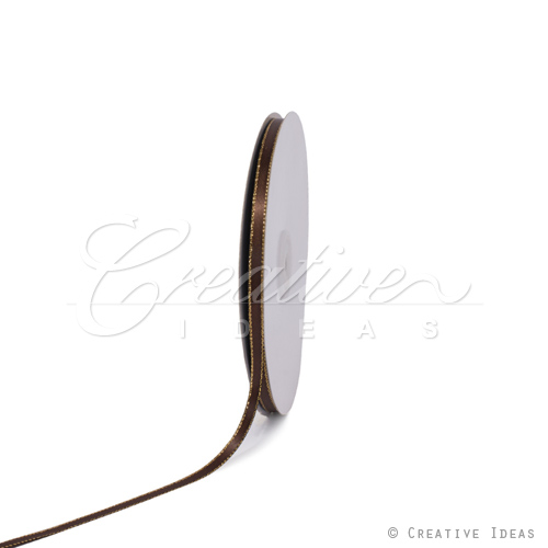 1/4" Satin With Gold Edge Ribbon - 50 Yards (Brown)