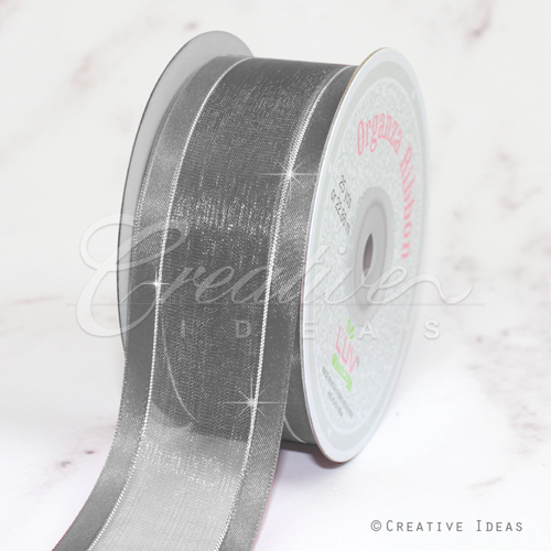 1 1/2" Organza With Satin & Silver Edge Ribbon - 25 Yards (Silver)