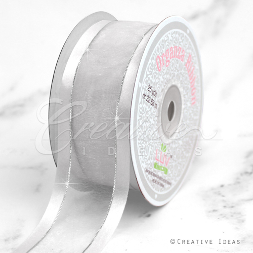 1 1/2" Organza With Satin & Silver Edge Ribbon - 25 Yards (White)