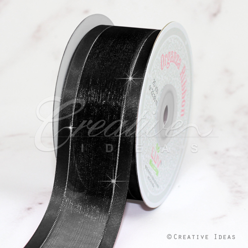 1 1/2" Organza With Satin & Silver Edge Ribbon - 25 Yards (Black)