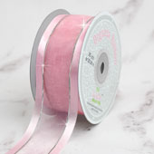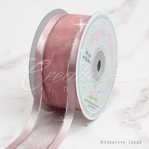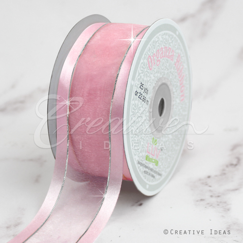 1 1/2" Organza With Satin & Silver Edge Ribbon - 25 Yards (Light Pink)