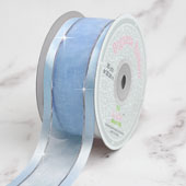 1 1/2" Organza With Satin & Silver Edge Ribbon - 25 Yards (Light Blue)