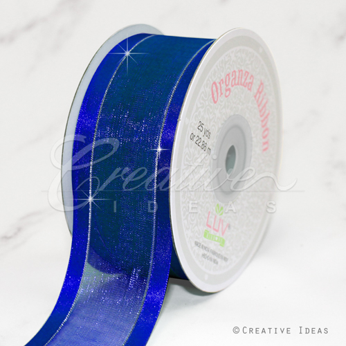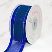 1 1/2" Organza With Satin & Silver Edge Ribbon - 25 Yards (Royal Blue)