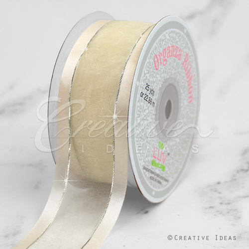 1 1/2" Organza With Satin & Silver Edge Ribbon - 25 Yards (Ivory)