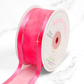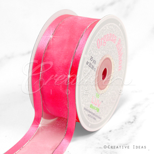 1 1/2" Organza With Satin & Silver Edge Ribbon - 25 Yards (Hot Pink)