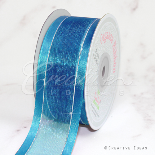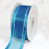 1 1/2" Organza With Satin & Silver Edge Ribbon - 25 Yards (Tropic Blue)
