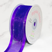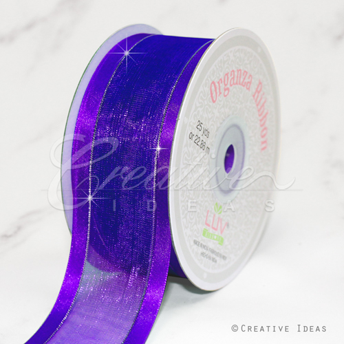 1 1/2" Organza With Satin & Silver Edge Ribbon - 25 Yards (Purple)