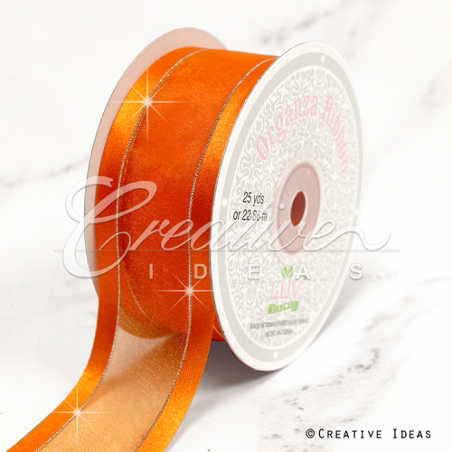 1 1/2" Organza With Satin & Silver Edge Ribbon - 25 Yards (Orange)