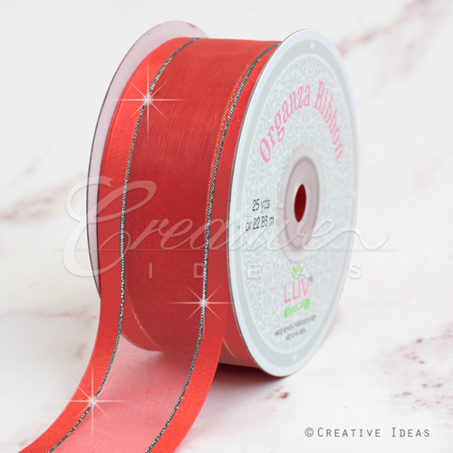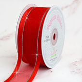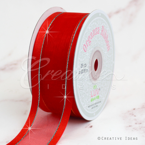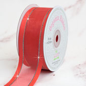 1 1/2" Organza With Satin & Silver Edge Ribbon - 25 Yards (Red)