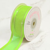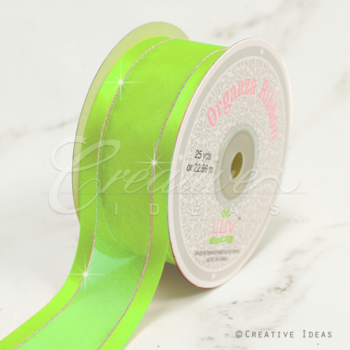 1 1/2" Organza With Satin & Silver Edge Ribbon - 25 Yards (Apple Green)