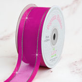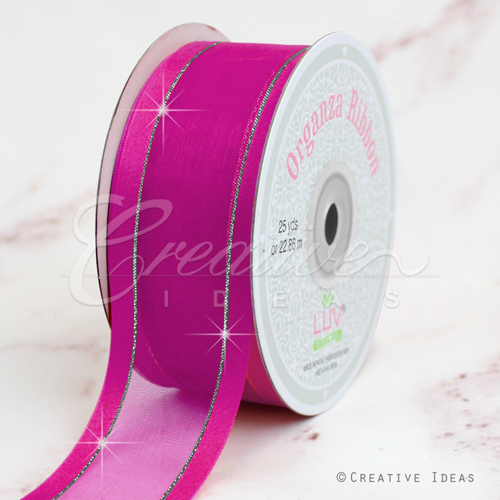 1 1/2" Organza With Satin & Silver Edge Ribbon - 25 Yards (Fuchsia)