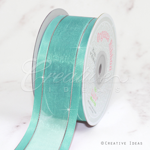 1 1/2" Organza With Satin & Silver Edge Ribbon - 25 Yards (Turquoise)