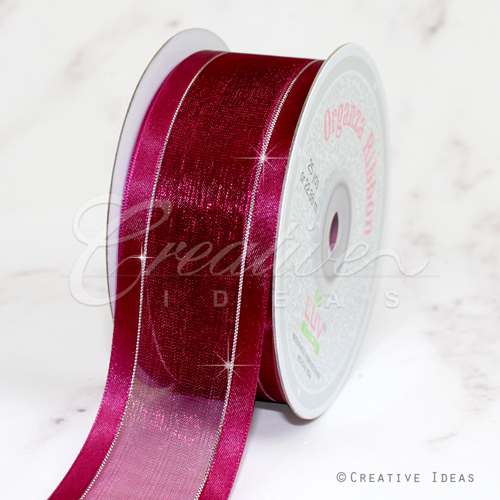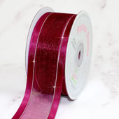 1 1/2" Organza With Satin & Silver Edge Ribbon - 25 Yards (Wine)