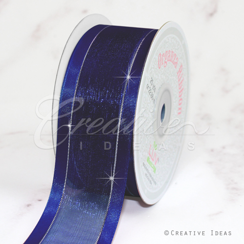 1 1/2" Organza With Satin & Silver Edge Ribbon - 25 Yards (Navy Blue)