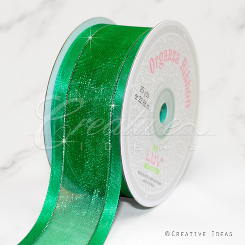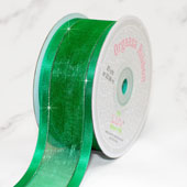 1 1/2" Organza With Satin & Silver Edge Ribbon - 25 Yards (Emerald Green)