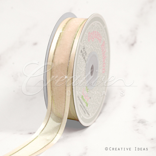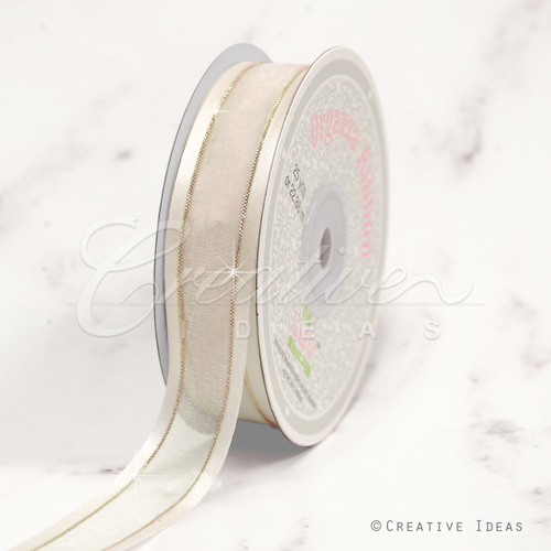 7/8" Organza With Satin And Gold Edge Ribbon - 25 Yards (Ivory)