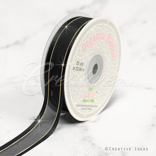 7/8" Organza With Satin And Gold Edge Ribbon - 25 Yards (Black)