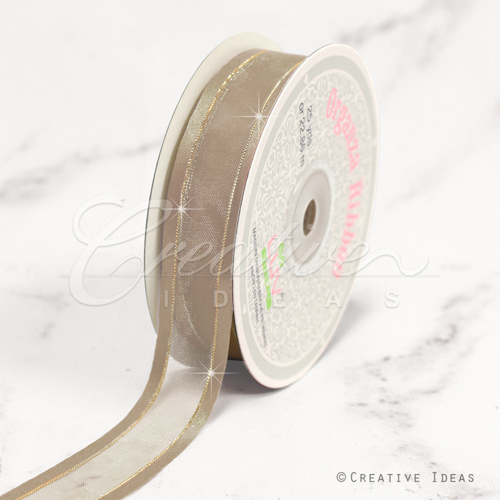 7/8" Organza With Satin And Gold Edge Ribbon - 25 Yards (Toffee)