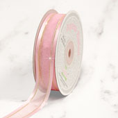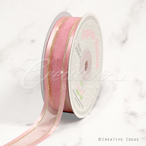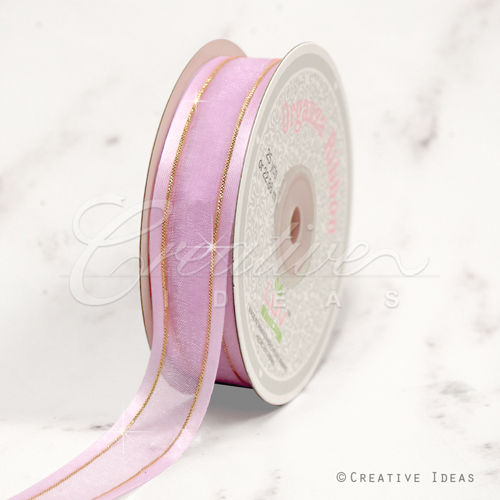 7/8" Organza With Satin And Gold Edge Ribbon - 25 Yards (Light Pink)