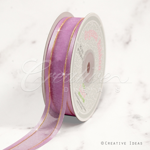 7/8" Organza With Satin And Gold Edge Ribbon - 25 Yards (Rosy Mauve)