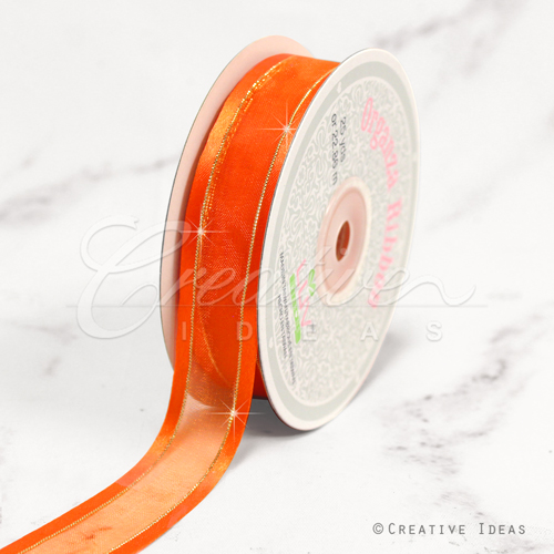 7/8" Organza With Satin And Gold Edge Ribbon - 25 Yards (Orange)