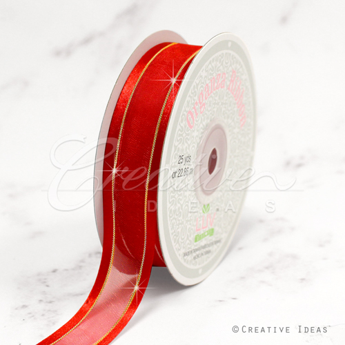 7/8" Organza With Satin And Gold Edge Ribbon - 25 Yards (Red)