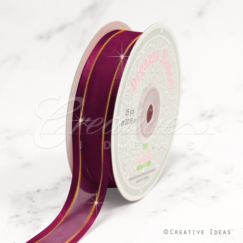 7/8" Organza With Satin And Gold Edge Ribbon - 25 Yards (Wine)