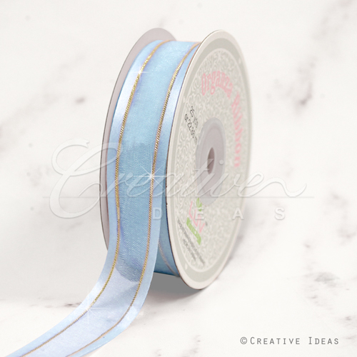 7/8" Organza With Satin And Gold Edge Ribbon - 25 Yards (Light Blue)