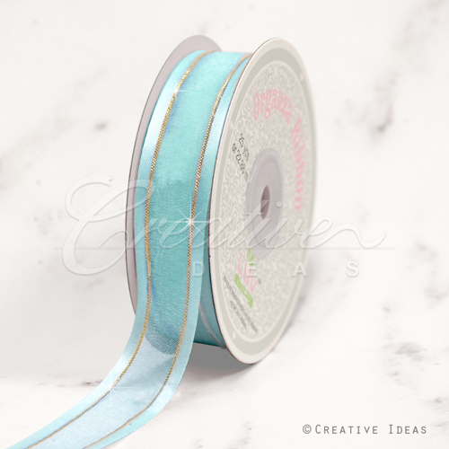 7/8" Organza With Satin And Gold Edge Ribbon - 25 Yards (Aqua)