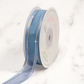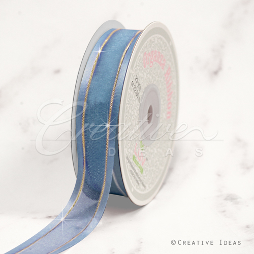 7/8" Organza With Satin And Gold Edge Ribbon - 25 Yards (Antique Blue)