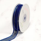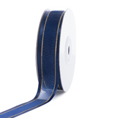 7/8" Organza With Satin And Gold Edge Ribbon - 25 Yards (Navy Blue)