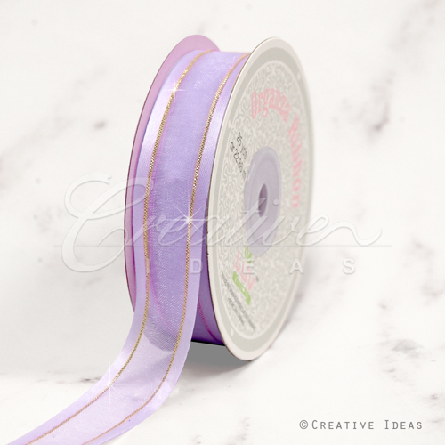 7/8" Organza With Satin And Gold Edge Ribbon - 25 Yards (Lavender)