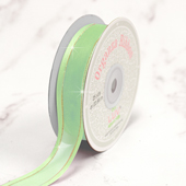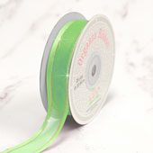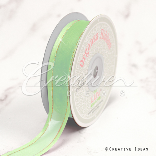 7/8" Organza With Satin And Gold Edge Ribbon - 25 Yards (Apple Green)