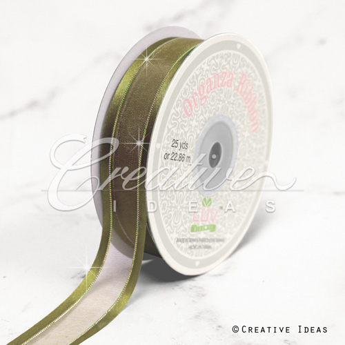7/8" Organza With Satin And Gold Edge Ribbon - 25 Yards (Moss Green)