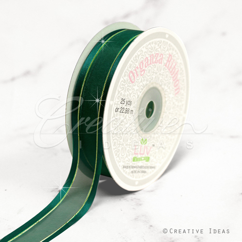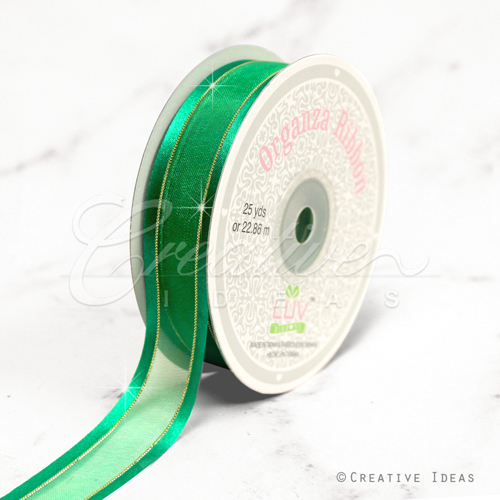 7/8" Organza With Satin And Gold Edge Ribbon - 25 Yards (Emerald Green)