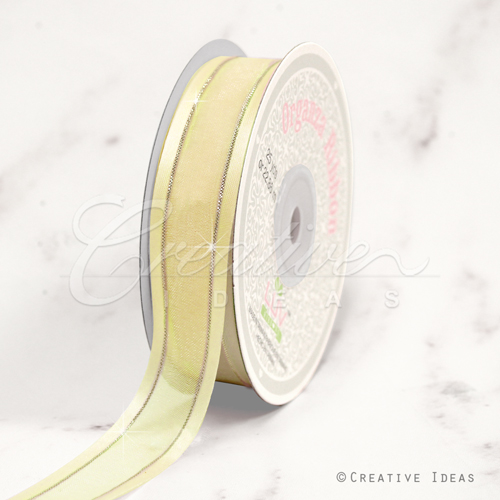7/8" Organza With Satin And Gold Edge Ribbon - 25 Yards (Baby Maize)